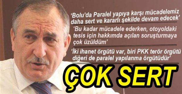 Bolu Belediye Başkanı Alaaddin Yılmaz, “Bolu’da ve her platformda tabanı ibadet, ortası ticaret, tavanı ihanet olan bir çeteye karşı, devlet içinde devlet kurmaya çalışan bu illegal paralel yapıya karşı mücadelemiz büyük bir kararlılıkla ve sert şekilde devam edecek” diye konuştu.