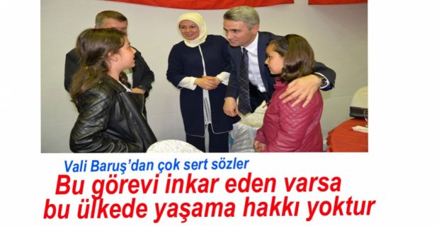 Vali Baruş, şehit ve gazi ailelerine yaptığı konuşmada, “Ben tekrar bu iftar yemeği için uzaktan yakından gelerek bizleri onurlandırdığınız için hepinize teşekkür ediyorum. Allah milletimizi böldürtmesin. Son 1 yılda 3 tane şehidimizi bu memleketin bütünlüğü uğruna toprağa verdik. Tabi öncesinde verdiğimiz şehitlerimiz de var. Son 1 yılda Ziya şehidimizi Göynük'ten, Yaşar şehidimizi Dörtdivan'dan, Yıldırım şehidimizi Kıbrıscık'tan ve son olarak da babası Bolu'da yaşayan Şerife kardeşimizi Mardin'de şehit verdik. Belki bu şehitler zinciri devam edecek ama bu ülke hiçbir zaman hainlere yar olmayacak” dedi.