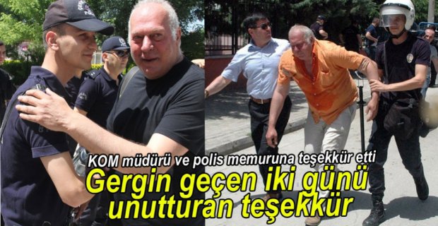 CHP’li 30 Milletvekilin Bolu Milli Eğitim Müdürlüğü önünde yapacağı protesto öncesinde biber gazlı müdahalede gazdan etkilenerek yerde kalan ve çevik kuvvet polisi tarafından yerden kaldırılan Sabah Gazetesi muhabiri ve Bolu Olay Gazetesi Yazı İşleri Müdürü Kasım Şahin, kendisine yardım eden KOM ve Terörle Mücadele Müdürü Özcan Özdemir ile çevik kuvvet polisini bularak teşekkür etti. Çevik Kuvvet Şube Müdürlüğü’nde görevli polis memurunun yanına giderek, “Dün yaşanan olaylar esnasında bir anda gazdan etkilenerek yere yığıldım. Bu esnada bana yardım eden KOM ve Terörle Mücadele Müdürü Özcan Özdemir ve çevik kuvvet polisi arkadaşıma teşekkür etmek istedim. Allah hepsinden razı olsun” dedi.