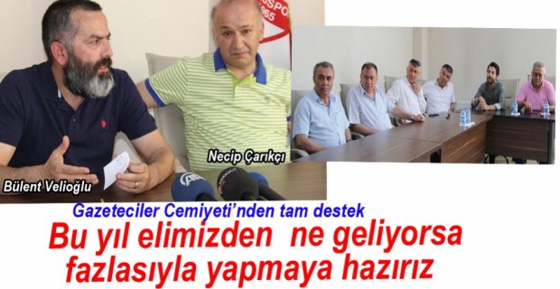 Ziyaretti ilk sözü alan Bolu Gazeteciler Cemiyeti Başkanı Bülent Velioğlu, “Yapılan olağan kongre ile tekrar Boluspor Başkanlığına seçilen Sayın Necip Çarıkcı ve yönetimine başarılar diliyoruz. İlk önce şunu söylemek istiyoruz, geçmiş yönetimler ile zaman zaman iletişim kopukluklarımız oldu. Dönem dönem kulübe giremedik, girmedik. Bizim bu dönemdeki tek isteğimiz bu sıkıntıların, bu iletişim kopukluklarının bir an önce ortadan kalkmasıdır. Bizim kulüpten daha hızlı bilgi alabilmemiz için öncelikle bir gazeteci arkadaşımız yönetimde. Bu bizi çok mutlu etti. Ayrıca Serdar Bey'in basın sözcüsü olması da bizi mutlu etti. Kendisiyle sık sık görüşüyoruz. Bu konuda bize daha hızlı bilgi alışverişi oluyor. Bolu Gazeteciler Cemiyeti olarak antrenman sahasına büyük bir pankart yaptırmak istiyoruz. Bunu Sayın Başkanımız ile de paylaştık. Gazeteciler Cemiyeti olarak 'Bolu basını sizinle' yazılı pankartı antrenman sahasına asmak istiyoruz” dedi.