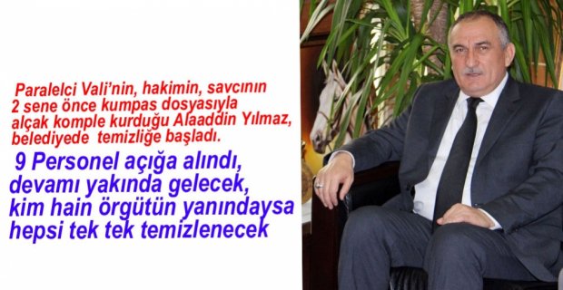 Bolu Başkanı Alaaddin Yılmaz, Fethullahçı Terör Örgütü’ne (FETÖ) yönelik başlatılan operasyonlar kapsamında belediyeden 9 personeli açığa aldığını söyledi.