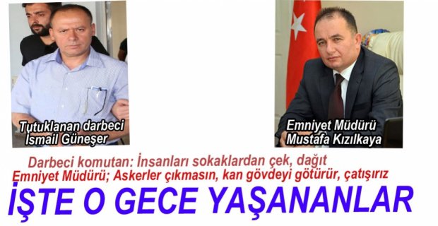 15 Temmuz darbe girişimi sonrasında askerlerin sokağa çıkmasını talimatını veren Bolu ve gözaltına alındıktan sonra tutuklanan 2. Komando Tugay Komutanı Tuğgeneral İsmail Güneşer’in polise verdiği ifade ortaya çıktı. Güneşer, Bolu Jandarma Komutanı Albay Türker Yılmaz ile İl Emniyet Müdürü Mustafa Kızılkaya'yı aradığını vatandaşların sokaklardan çekilmesini istediği söyledi. Güneşer, "Emniyet Müdürü, bana 'Abi kesinlikle jandarma çıkmasın, buraya gelmesin, kan gövdeyi götürür, çatışmaya gireriz. Senden istirham ediyorum' dedi. Ben de 'Sakın böyle bir şey yaşamayın ben Türker'i arayıp emir veriyorum' dedim.” diye konuştu.