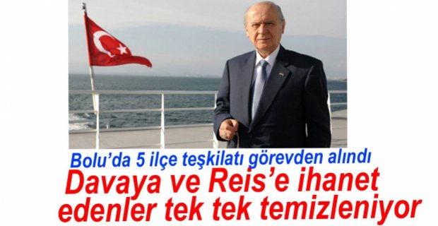 Edinilen bilgiye göre, MHP’nin Bolu’nun Mengen, Dörtdivan, Mudurnu, Gerede ve Göynük İlçeleri yönetim kurulları görevden alındı. MHP Bolu İl Başkanı Adem Evcil, kapatmaları değerlendirirken, “Genel Başkanımız Devlet Bahçeli'nin takdiriyle 5 ilçe teşkilatı görevden alınarak parti binaları da geçici bir süreyle kapatıldı. İlçe teşkilatlarımız yeniden oluşturulacak. Parti genel merkezinin vermiş olduğu yetkiyi görevdeyken kötüye kullanan herkesle ilgili disiplin süreci yürütülecek. Bundan kimsenin kuşkusu olmasın” dedi.