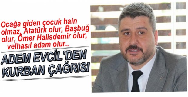 Adem Evcil, “Bu yıl vekaleten kurban kesimi yapan Ülkü Ocağımızın düzenlediği kampanyayı destekliyoruz. Ocağımızın emanetlerinizi ihtiyaç sahiplerine ulaştıracağına şüphe yoktur. Vekaletle kurban kesimi 650 TL’dir. Ayrıca kurban derilerinizi Bolu Ülkü Ocakları'na bağışlayın, hem içiniz rahat olsun hemde kafanız rahat olsun. Ocağa giden çocuk hırsız olmaz, ocağa giden çocuk madde bağımlısı olmaz, ocağa giden çocuk vatan haini olmaz, Atatürk olur, Başbuğ olur, Ömer Halisdemir olur. Velhasıl kelam adam olur adam” dedi.