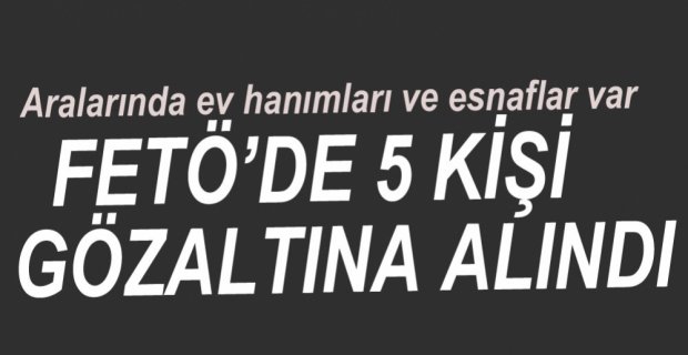 Bolu’nun Yeniçağa ilçesinde Fethullahçı Terör Örgütü’ne yönelik düzenlenen operasyonda aralarında ev hanımı ve esnaflarında bulunduğu 5 kişi gözaltına alındı.