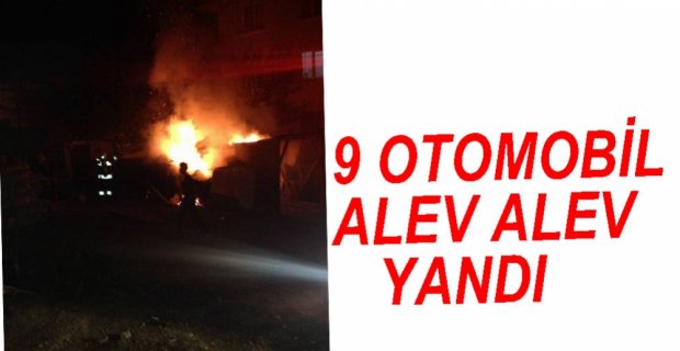 Bolu’da dün gece saatlerinde Sanayi Sitesi’nde bulunan hurdalıkta bulunan 9 otomobil alev alev yandı.