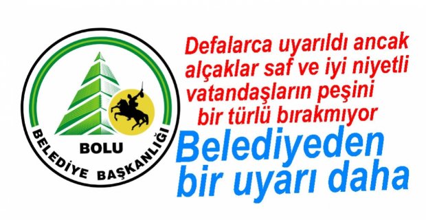 Yapılan yazılı açıklamada, “Bolu Belediye Başkanlığı’na gelen ihbarda, kimliği belirsiz kişi ya da kişiler tarafından Bolu Belediye Başkan Yardımcılarının adının kullanılarak yardım adı altında para talebinde bulunulduğu belirtilmiştir. Vatandaşlarımızın bu tür aramalara itibar etmemeleri önemle duyurulur” ifadeleri kullanıldı.
