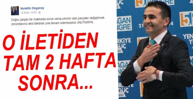 Doğanay’ın 12 Ekim’de Ankara dönüşü yayınladığı “Doğru çalışan bir makinede sorun varsa, sıkıntılı olan parçaları değiştirmek zorundasınız aksi takdirde yola devam edemezsiniz UNUTMAYIN” şeklindeki mesajından 2 hafta sonra Emniyet Müdürü değişti. Şimdi gözler başka değişimlerin yaşanıp yaşanmayacağına çevrildi.