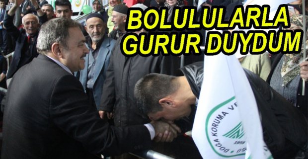 41 milyon değerindeki 10 tesisin açılış ve temel atma töreni için Bolu’ya gelen Orman ve Su İşleri Bakanı Veysel Eroğlu, 17 Temmuz Spor Salonu’nda gerçekleştirilen törende Fethullahçı Terör Örgütü ve faiz lobisine yüklendi. Törene Bolu Valisi Aydın Baruş, AK Parti İl Başkanı Nurettin Doğanay, AK Parti Milletvekilleri Fehmi Küpçü, Bolu Belediye Başkanı Alaaddin Yılmaz, Bolu Emniyet Müdürü İbrahim Özel daire başkanları ve partililer katıldı.