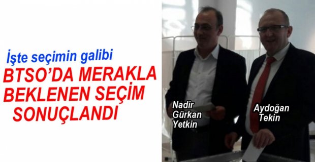 452 üyenin bulunduğu grupta Aydoğan Tekin 169 üyenin oyunu alırken, Nadir Gürkan Yetkin 41 oy aldı. Yapılan seçim sonucu BTSO Meclisi'ne Aydoğan Tekin seçildi.
