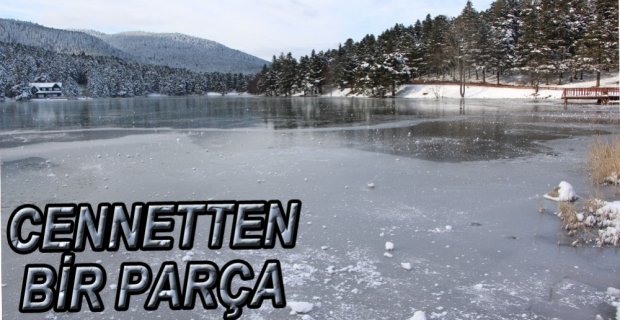 Binlerce ziyaretçiye ev sahipliği yapan Gölcük Tabiat Parkı’nda bulunan göl buz tuttu. Kar kalınlığının 30 santimetreye ulaştığı Gölcük Tabiat Parkı’nda kartpostallık görüntüler oluşurken, karla kaplanan çam ormanları tatilcileri büyülüyor.