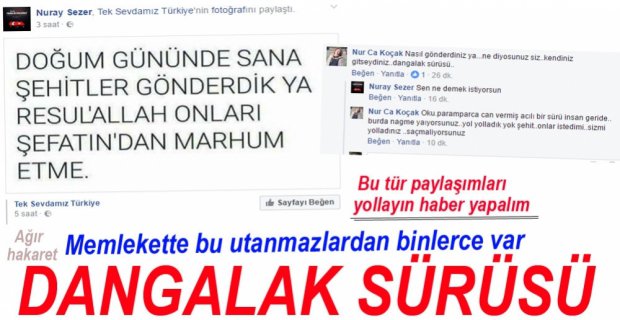 Sosyal paylaşım sitesi Facebook’ta bir iletinin altına şehitleri aşağılayan yorum yazan Nu Ca Koçak isimli kullanıcı büyük tepki çekti. Kadın takipçi dangalak sürüsü sözleriyle hakaret etti.