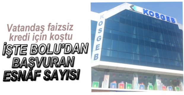 KOSGEB tarafından işverenler için 50 bin liralık faizsiz destek başvurusu sona erdi. KOSGEB Bolu Müdürü Celil Kürşad Dereci tarafından yapılan açıklamada Bolu’dan 1465 işverenin kredi almak üzere başvuruda bulunduğunu ifade edildi. . Kredi başvurularında ilimize ayrılan kotaya giren işletmelere cep telefonu mesajı ile bildirim gönderilecek ve KOSGEB’le anlaşmalı bankalardan istediklerine kredi müracaatı yapabilecekler.