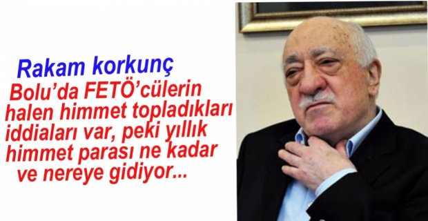 Fetullahçı Terör Örgütü yapılanmasının en önemli illerinden birisi olan Bolu’da, örgüte yönelik operasyonlar devam ederken, örgütün himmet ağı üzerinde çalışmaların devam ettiği düşünülüyor. Örgüt ağabeyleri tarafından toplanan himmetlerin Bolu’da yıllık 2.5 ile 3 milyon civarında olduğu ve himmet paraları elden toplanarak Sri Lanka üzerinden örgütün Amerika ve Kanada’da ki 37 ayrı kuruluşa gönderildiği tahmin ediliyor.