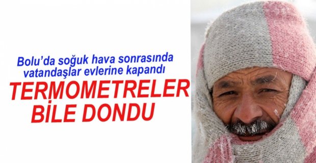Tüm Türkiye’yi etkisi altına alan soğuk hava dalgası Bolu’da don olaylarının oluşmasına neden oldu. Meteoroloji Genel Müdürlüğü’nün en soğuk iller sıralamasında ilk zaman zaman ilk sıraları alan Bolu kent merkezinde önceki gece hava sıcaklığı eksi 29 derece olarak ölçüldü. Hava sıcaklığının eksi 29’lara düşmesiyle birlikte şehir merkezindeki çeşmeler dondu.