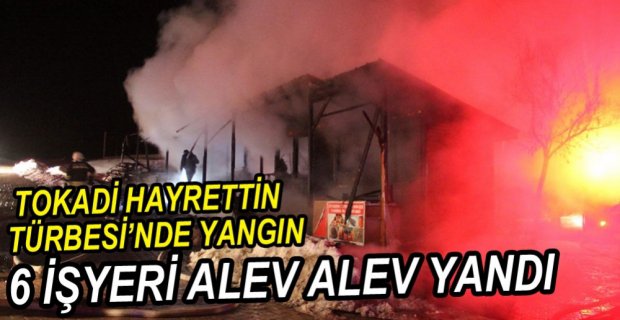 Tokadi Hayrettin Türbesi'nin girişinde bulunan ve yöresel ürünler satılan 6 işyeri alev alev yandı.