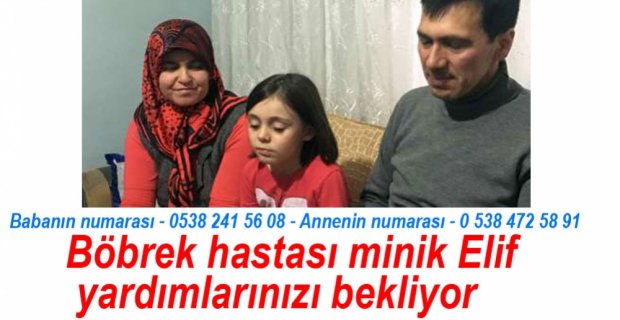 İlköğretim 5. sınıfta okuyan Zeynep Elif Sarımsakçı’nın annesi Firdevs Sarımsakçı, hastane ücretleri, ilaç ücretleri ve yol masraflarının kendilerini zorlandığını söyledi. Anne Sarımsakçı, “Biz Zeynep Elif için yardım istiyoruz. Tedavisi masraflı oluyor. Tedavi için, Ankara’ya gidip geliyoruz, ilaçları var. Hastane ücretleri bizi zorluyor. Zeynep Elif’in böbrek ve idrar yolu enfeksiyonu var. İdrar kesesinde hasar ve kaçak var. Böbreğinde hasar var. Hasar birinde fazla birinde az. Böbrekleri için fazla bir şey yapılamaz dediler, ancak idrar kesesindeki hasarı tedavi edebiliriz dediler. Bu hafta yine tedavi için Ankara’ya gideceğiz.” diye konuştu.