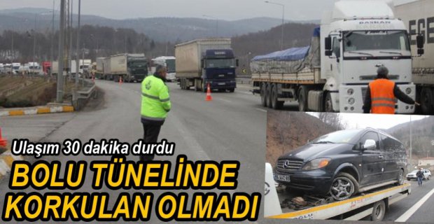 Bolu Dağı Tüneli TEM Otoyolu İstanbul istikametinde meydana gelen trafik kazası, yaklaşık 30 dakika trafiğin durmasına neden oldu.