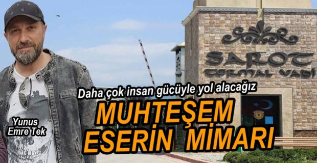 Bolu’nun Mudurnu ilçesi ve Taşkesti Beldesi’nde yaptığı yatırımlar ile Türkiye’de devre mülk sektörünün lider firması haline gelen Sarot Şirketler Grubu Bolu’nun dışarıya açılan penceresi oldu. Sarot Termal Vadi Projesi’nin uygulama mimarı ve Türkiye’nin tanınmış uygulama mimarlarından Yunus Emre Tek, “Bugüne dek mesleki hayatımda bir çok proje yaptım en keyif aldığım projeleri Bolu’da şuan yapmaktan büyük keyif duyuyorum” dedi. Tek ayrıca, “Yatırımcılarımız ve şirketimizin kurucuları Bülent Yılmaz ve Emin Yerdelen Cumhurbaşkanımızın başlattığı istihdam kampanyasını da destekliyorlar. Daha çok insan gücüyle daha çok yol alacağız” diye konuştu.