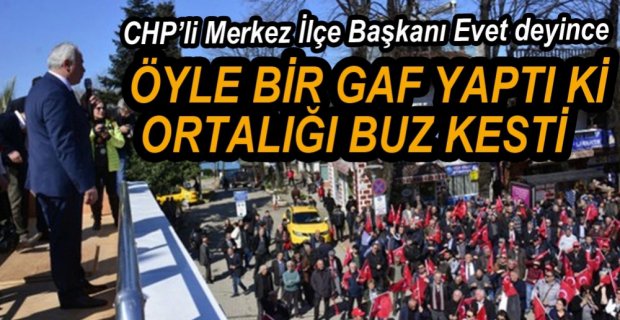 CHP milletvekillerinin Düzce'nin Akçakoca ilçesinde yaptığı 'Hayır' mitinginde, İlçe Başkanı Turan Güler’in konuşma sırasında "Böyle güzel bir gün 'Evet’in habercisidir'" deyince ortalık bir anda buz kesti.