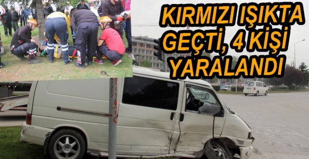 Bolu’da, kırmızı ışıkta geçtiği iddia edilen otomobille minibüsün karıştığı kazada 4 kişi yaralandı.