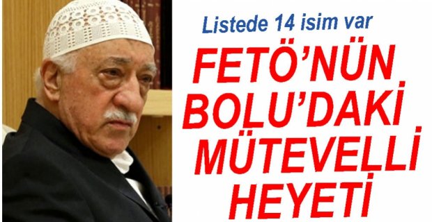 Bolu’da Fetullahçı Terör Örgütü’nün mütevelli heyeti tespit edildi. Savcının hazırladığı iddianamede 14 kişi yer aldı. Örgütün Bolu'daki para trafiğini firari işadamı Adnan Daylan'ın yönettiği iddianamede yer aldı.