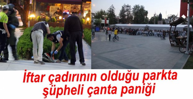 Bolu'da, iftar çadırı kurulu Anıt Park'ın yaklaşık 50 metre uzağına bırakılan şüpheli çanta paniğe neden oldu. Bomba imha uzmanı tarafından patlatılan ve okul çantası olduğu öğrenilen paketin içinden bir çift paten çıktı.