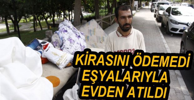 Bolu’da, Köroğlu Mahallesi’nde yalnız yaşayan ve 2 aydır işsiz olan 37 yaşındaki Durmuş Adem isimli vatandaş 325 lira olan ev kirasını 5 aydır ödeyemediği için iddiaya göre ev sahibi tarafından dün gece saatlerinde eşyalarıyla birlikte evden çıkarıldı. Akpınar Mahallesi’nde bulunan Uğur Mumcu Parkı’na bırakılan eşyalarıyla birlikte geceyi burada geçiren Durmuş Adem, sabah saatlerinde vatandaşlar tarafından farkedilerek durum zabıta ekiplerine haber verildi. Bir süre Adem ile konuşan ekipler, eşyaları güvenli bir yere bırakmak için kamyonete yükleyerek ayrıldılar.