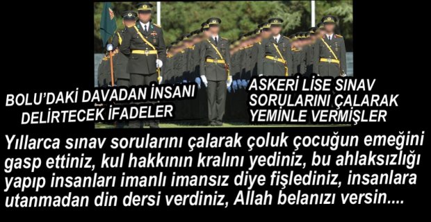 Bolu’da FETÖ’nin Çatı Davası devam ederken, örgüte bağlı şirkette çalıştığı ve bylock kullandığı iddia edilen Remzi Dayanır çarpıcı ifadelere yer verdi. ‘Muaz’ kod adını kullandığı iddia edilen Remzi Dayanır’in askeri lise sınav sorularının yemin ettirerek öğrenci grubuna verdiği iddia ediliyor. İddianın sahibi ise, Karabük’te FETÖ/PDY Silahlı Terör Örgütü suçlamasıyla yargılanan Veysel Demir.