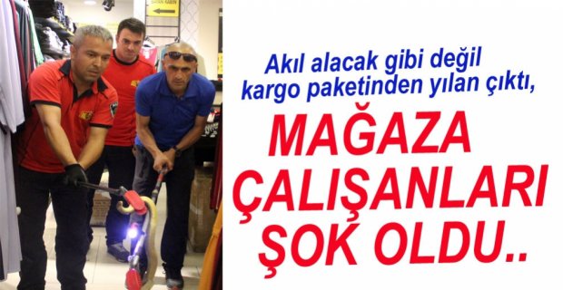 Bolu’da, bir giyim mağazasına gelen elbise kolisinin içinden çıkan yılan iş yerinde paniğe neden oldu.