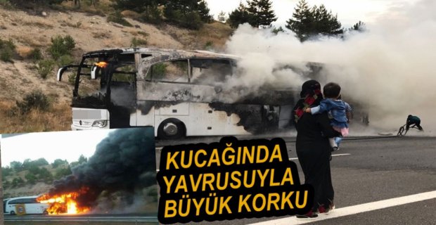 Otobüste bulunan yolcular otobüsün alev alması sonrasında büyük korku yaşadılar. Çocuklarıyla birlikte otobüsten kendilerini dışarıya atan yolcular otobüsün alev alev yanmasını çaresiz gözlerle izlediler.