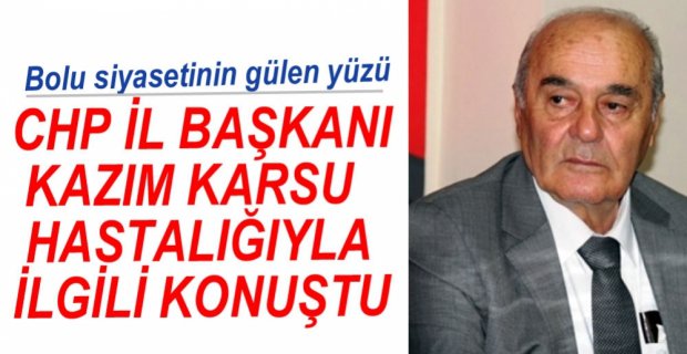 Cumhuriyet Halk Partisi Bolu İl Başkanı Kazım Karsu, geçtiğimiz yıl başlayan rahatsızlığı ile ilgili açıklama yaptı. Partide düzenlenen bayramlaşmada konuşan Karsu, “Merak eden arkadaşlar vardır, bir kas hastalığına milyonda bir kişiye denk gelen bir kas hastalığına yakalandım. Aşağı yukarı bir yıldır bunun tedavisi ile uğraşmaktaydım. İlaçlar nihayet işe yaradı kendi sağlığıma dönüyorum” dedi.