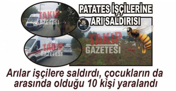 Bolu’nun Çakmaklar Köyü’nde tarlada patates toplayan işçiler arı yuvasının üzerinde mola verince arıların saldırısına uğradılar. 3’ü çocuk 10 kişi yaralanarak hastaneye kaldırıldı.