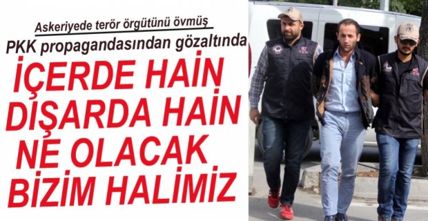 Edinilen bilgiye göre, Bolu'nun Göynük ilçesinde askerlik yapan 24 yaşındaki Vedat Akkurt isimli jandarma er, sözlü ve sosyal medya hesabından yazılı şekilde PKK terör örgütü propagandası yaptığı iddiasıyla İl Emniyet Müdürlüğü Terörle Mücadele Şube Müdürlüğü ekipleri tarafından gözaltına alındı.