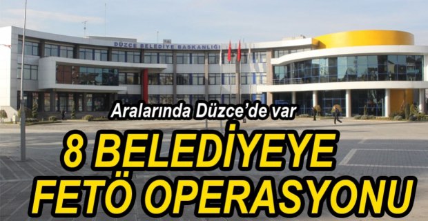 FETÖ/PDY soruşturması kapsamında aralarında Düzce’nin de olduğu İstanbul merkezli toplam 8 ilde eş zamanlı olarak operasyon düzenlendi. Operasyonun belediyelerde çalışan ve daha önce ihraç olan şahıslara yönelik yapıldığı belirtildi..