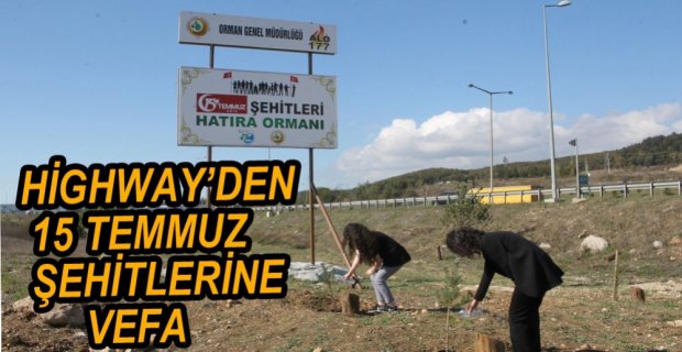 Fetullahçı Terör Örgütü tarafından gerçekleştirilmek istenen 15 Temmuz darbe girişimi sonrasında vatan uğruna canını feda eden şehitlerimizin anısını yaşatmak adına Highway Outlet Yönetimi ve Bolu Orman İşletme Müdürlüğü işbirliğiyle alışveriş merkezinin hemen yanı başında bir alan üzerinde çalışma yaptı. Toplamda 5 dönümlük alanda, 15 Temmuz darbe girişiminde şehit düşen vatandaşlarımızın anısına 249 adet fidan dikilerek, şehitlerimizin her birinin hatırasının bu alanda yaşatılacak.
