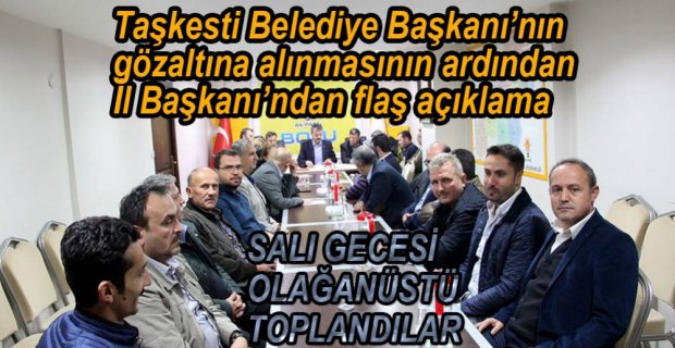 Olağanüstü toplanan AK Parti Bolu İl Teşkilatı Salı akşamı jet hızıyla toplandı. Yaklaşık 1 saat süren toplantı sonrasında Taşkesti Belediye Başkanı Saim Çevik’in ihraç edilmesi kararını aldı.