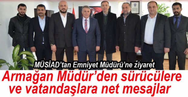MÜSİAD Bolu Şube Başkanı Abdullah Abat ve Yönetim Kurulu Üyeleri Bolu İl Emniyet Müdürü Armağan Adnan Erdoğan’ı makamında ziyaret etti. Ziyarette trafik sıkışıklı ve otopark sorunu ele alınırken, Erdoğan, “Abartı egzozların halkı rahatsız ettiği bu yönde de uygulamaların devamı gelecek” diye konuştu.