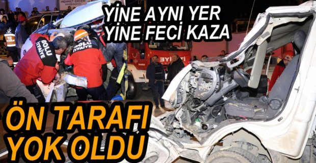Edinilen bilgiye göre, D-100 Karayolu’nun İstanbul istikametinde yan yoldan ana yola çıkan Aydın Kurtuluş idaresindeki 14 BA 175 plakalı kamyonet, sanayi kavşağında önünde seyreden Ayhan Toksal yönetimindeki 14 AL 950 plakalı kamyona arkadan çarptı. Kazada kamyonet içinde sıkışan Aydın Kurtuluş, Bolu Belediyesi itfaiyesi ve UMKE ekiplerinin yaklaşık yarım saat süren çalışmasıyla sıkıştığı yerden çıkarılarak ambulansa taşındı.