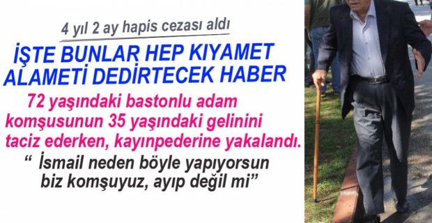 Bolu’nun Gerede ilçesinde akıl almaz bir olay yaşandı. 35 yaşındaki Şerif T., 72 yaşındaki komşularının kendisine saldırdığını söyleyerek, bu sırada eve giren kayınpederinin “İsmail neden böyle yapıyorsun? Biz komşuyuz, ayıp değil mi?” dedikten sonra İsmail Ç.’nin kaçtığını söyledi. Mahkeme salonuna bastonla gelen 72 yaşındaki adam 4 yıl 2 ay hapis cezasına çarptırıldı.