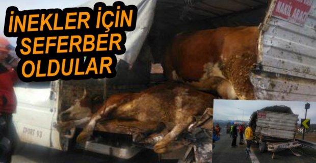 TEM Otoyolu Ankara şeridinde meydana gelen trafik kazasında 3 inek yaralandı. Yaralı inekler Bolu Belediyesi Veteriner İşleri Müdürlüğünde tedavi altına alındı.