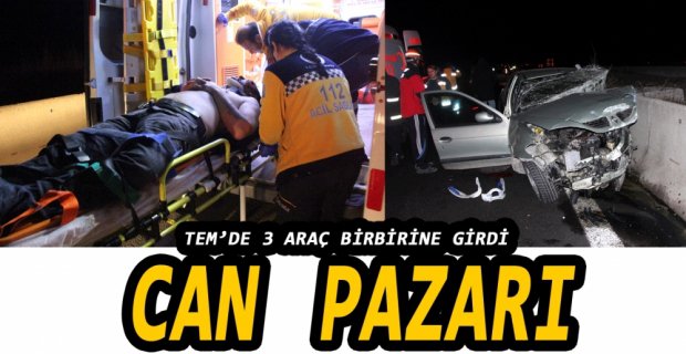 Bolu’da, TEM Otoyolu’nda 3 otomobilin karıştığı zincirleme trafik kazasında 3 kişi yaralandı.