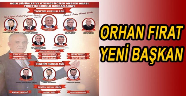 Bolu Şoförler ve Otomobilciler Odası 41. Olağan genel kurulunda yapılan seçimde Cengiz Çavuşoğlu ile yarışan Orhan Fırat, 372 oy alarak Şoförler Odasının yeni başkanı oldu.