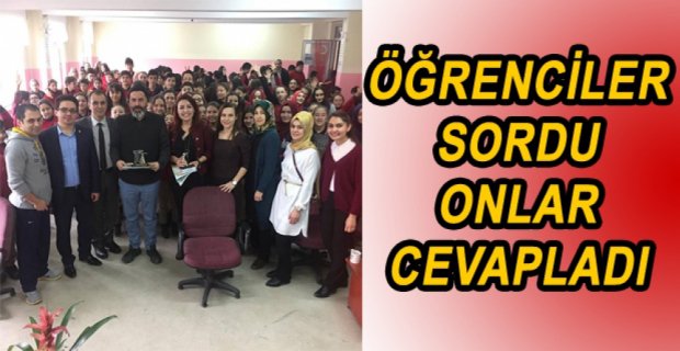 Bolu Takip Gazetesi Haber Müdürü Ebru Eyvazoğlu da meslekte 19. Yılını yaşadığını söyleyerek, “1999 yılında muhabirlikte başladığım meslek hayatıma halen sahada aktif muhabirlik yaparak devam ediyorum. Gazetecilik mesleği, kamuoyunun dolayısıyla sizin soramadığınız soruları bizim ilgili kişilere yöneltmemiz ve cevabı da tarafsız ve objektif olarak size aktardığımız sanattır. Bu anlamda her zaman soruları soran tarafta olduğumuz için bugün cevap veren durumda olmak bizim için de heyecan yarattı. Gazetecilik tutkuyla, sevgiyle yapılacak bir meslek. Eğer içinizde o tutku yoksa sıradan bir iş haline dönüşürken, heyecanla yapıldığında dünyanın en güzel mesleklerinden biri. Televizyonlar da, dizilerde gördüğümüz bir kişinin peşinden koşarak mikrofon uzatan insanlar değiliz biz. Bütün dramların, olayların içinde olan üçüncü bir göz olmak gibi bir görevimiz var. Öğrencilerin de bu mesleği tanıyarak gelişimine katkı sağlamalarını ve belki hayatlarını ona göre yönlendirmelerini arzu ediyoruz. Bizleri konuk eden idareci, öğretmen ve siz öğrencilerimize teşekkür ederiz” dedi.