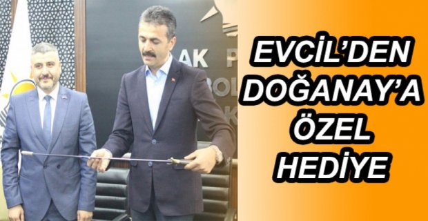 Milliyetçi Hareket Partisi Bolu İl Başkanlığı, Ak Parti İl Başkanı Nurettin Doğanay’a hayırlı olsun ziyaretinde bulundu. Ziyarette Evcil, Doğanay’a üzerinde ismi yazılı ve Nisa Suresinin 58’nci ayetinin yazılı bulunduğu bir kılıç takdir etti.