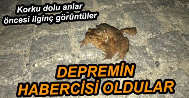 Öte yandan dünyaca ünlü İngiliz haber kanalı BBC’nin 2010 yılında yaptığı bir habere göre ilk kez 2009 yılında İtalya’daki sismik hareketi fark eden kurbağaların olduğu gözlemlendi. Kurbağalar depremden üç gün önce bölgeden uzaklaşmıştı. Bazı hayvanların doğal afetlere karşı duyarlı oldukları biliniyordu. Son olarak yapılan bir araştırmaya göre bir cins kurbağa depremi üç gün önceden hissedebiliyor. Üstelik de kurbağaların yaşadığı bölge depremin merkez üssünden 74 kilometre uzaktaydı. Biyolog Dr. Rachel Grant şunları söylüyor: ” İtalya’daki depremden önce kurbağaların bölgeyi terke ettiğini gördüm. Bu alışageldiğimiz bir durum değildi. Çünkü burası onların üreme alanlarıydı. Depremden üç gün önce bu üreme alanında tek bir çift bile bulamadık. Araştırmalarımıza göre kurbağalar sismik hareketlere duyarlı… Bu arada ortaya çıkan gazları fark edebiliyorlar. Bunu da bir deprem alarmı gibi kullanıyorlar.”Bu açıklanamayan doğa olayını cep telefonuyla görüntüleyen bir köylü vatandaşın kamerasına bakın sıra dışı hareketlilik nasıl yansıdı.