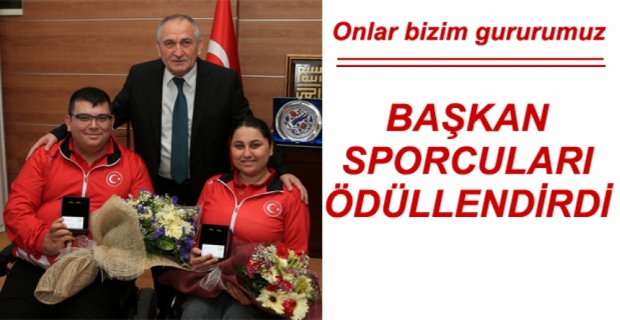 Bolu Belediye Başkanı Alaaddin Yılmaz, Paralimpik Okçuluk Dünya Şampiyonası’nda dünya ikincisi olan ve Türkiye’yi gururlandıran milli sporcular Merve Nur Eroğlu ve Ömer Aşık’ı 2’şer cumhuriyet altınıyla ödüllendirdi.