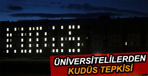 Bolu’da Yüksek Öğrenim Kredi ve Yurtlar Kurumu (KYK) yurtlarında kalan öğrenciler, İsrail’in Filistinlilere yönelik saldırılarını yurt binalarının ışıklarını açıp kapatarak ve binaların ışıkları ile “Kudüs” yazarak protesto etti.