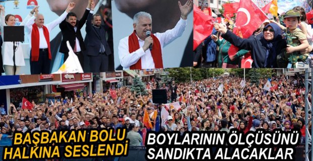 Başbakan Yıldırım, partisince Bolu Kent Meydanı’nda düzenlenen mitinginde konuşmasına, vatandaşların ramazan ayını kutlayarak başladı. Bolu’ya olan muhabbetlerinin farklı olduğunu belirten Yıldırım, “Biz ne zaman Bolu’ya gelsek, büyük Türkiye davasına inanmış fedakar vatandaşlarımızı, yiğit Boluluları görüyoruz. Sevginiz, ahde vefanız için sizlere yürekten teşekkür ediyorum” diye konuştu.