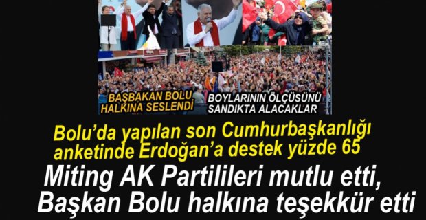 AK Parti Bolu İl Başkanı Nurettin Doğanay, AK Parti Genel Başkan Vekili ve Başbakan Binali Yıldırım’ın katılımıyla gerçekleştirilen mitingle ilgili olarak, “Güçlü ve güzel bir miting gerçekleştik. Tüm Bolulu hemşerilerime katılımlarından dolayı teşekkürlerimi sunuyorum. Ve diyorum ki; Türkiye 25 Haziran sabahı, farklı bir Türkiye’ye uyanacak” dedi.